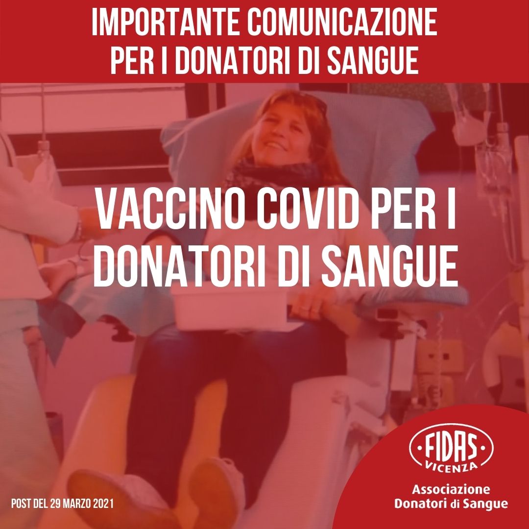 Il gesto solidaristico dei donatori di sangue è essenziale ai fini degli obiettivi del Sistema Sanitario Nazionale, per questo i donatori di sangue potranno essere sottoposti a vaccinazione anti-Covid in una fase successiva rispetto alle categorie già individuate quali prioritarie, ovvero: operatori sanitari, personale ed ospiti dei presidi residenziali per anziani, persone di età avanzata e persone con più di una patologia clinica pregressa, immunodeficienze e/o disabilità.