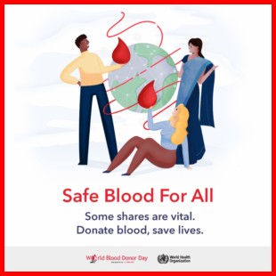 Il 14 giugno 2019 ricorre la 15a Giornata Mondiale del Donatore di Sangue (World Blood Donor Day), promossa dall’Organizzazione Mondiale della Sanità. La campagna di quest’anno è incentrata sulla sicurezza delle terapie trasfusionali, tradotta attraverso lo slogan “Safe blood for all” (sangue sicuro per tutti): obiettivo che può essere raggiunto tramite la donazione volontaria e soprattutto periodica così da garantire l’autosufficienza.