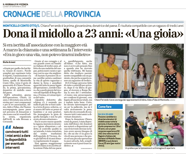 Articolo del Giornale di Vicenza del 19-09-2016.