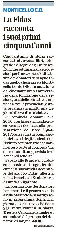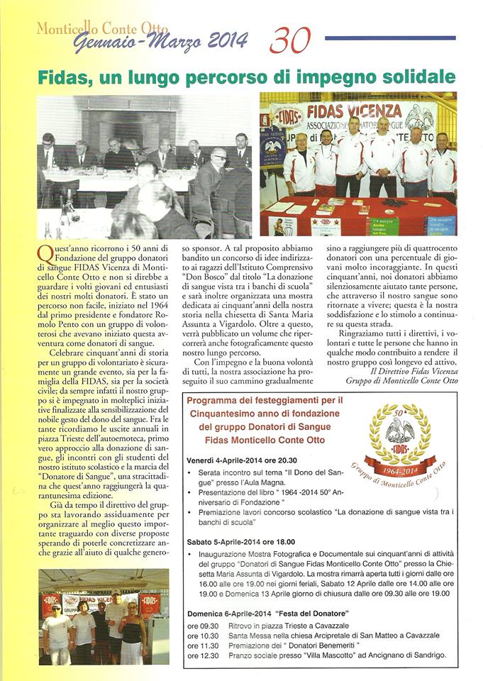 Libro 50° cinquantesimo di fondazione Leggi il libro sul 50 di fondazione del Gruppo Fidas di Monticello Conte Otto